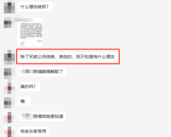随后有知情人士在5月25日表示:确定该跨境服务团队被逮捕,相关负责人刚放出来,微信也被没收了。而关于被逮捕理由,有卖家透露是买卖公民信息。