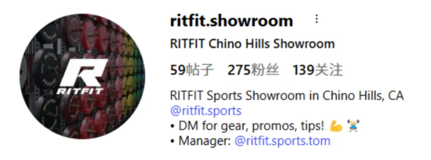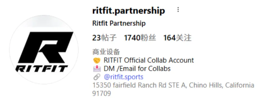 此外,品牌还精细化地孵化了辅助矩阵:@ritfit.partnership 专门用于红人商务合作招募,@ritfit.showroom 则承接线下空间的运营与社群活动宣发。