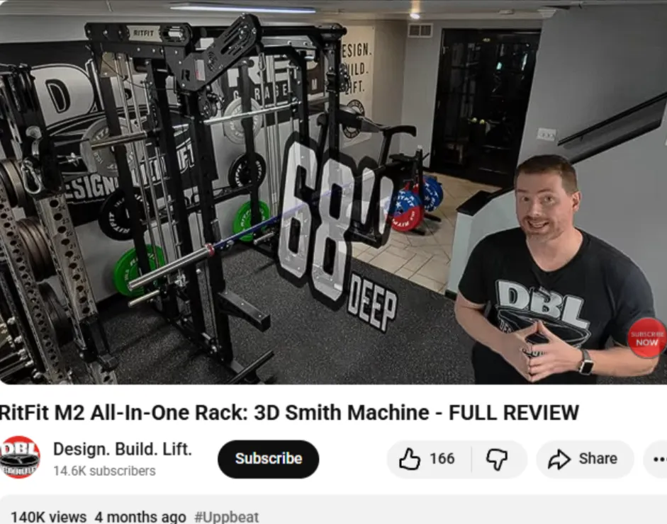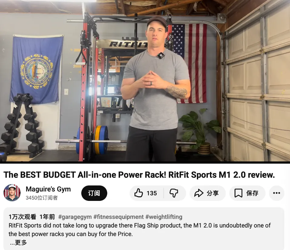 他以直言不讳的真实评测闻名,在《RitFit M1 2.0 Review》视频中(1 万次观看),他拆解零部件,将其称为“千元美金级别最值得买的综合训练架”,用硬核的数据分析直接打消了用户对耐用品使用寿命的疑虑 。