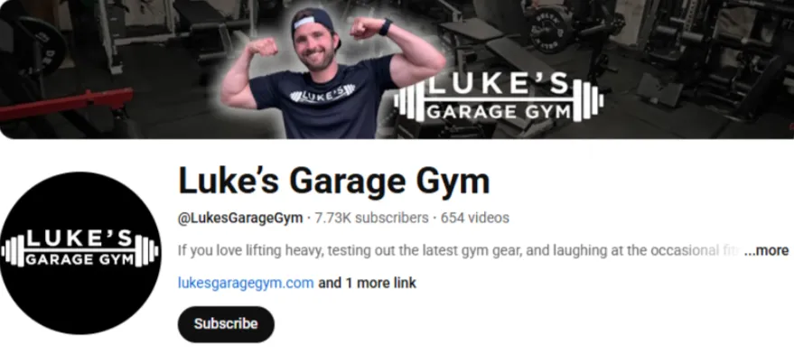 代表账号@ Luke's Garage Gym(7.73K 订阅,654 个视频)。属于精准的腰部垂类博主 。账号专注家庭健身房与力量训练器材评测 ,受众群体垂直,主要是正在搭建家庭健身房、关注性价比与实用性的力量训练人群。这些受众对器材的尺寸要求极高(空间敏感),且决策过程非常理性,比起品牌广告,他们更愿意相信真实的长期使用报告。
