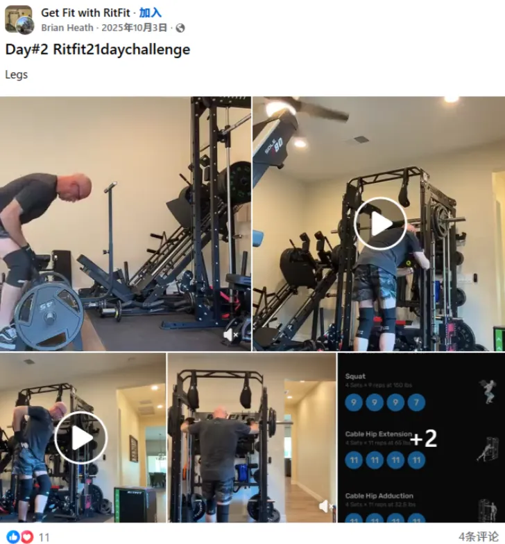 在线上,品牌持续运营 “21-day challenge”(21天挑战)等活动。比如用户 Brian Heath 分享了 Day#2 的深蹲(Squat)和髋部拉伸等动作打卡 。这不仅是单纯的抽奖 Giveaway,更是在培养用户的高频使用习惯。习惯一旦养成,后续健身配件的长期复购便是水到渠成的事情。