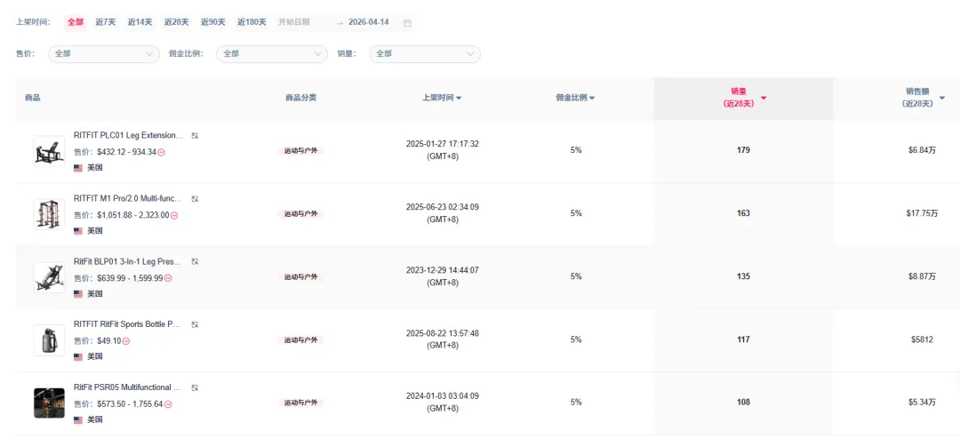 内容电商 (TikTok Shop):核心向高客单器械引流,其内容以产品展示、功能演示为主,搭配直播切片二次传播,重点承担“种草+品牌曝光”功能。该策略转化成效显著,RitFit在TikTok美区小店的单月销售额约为80.76万美元。