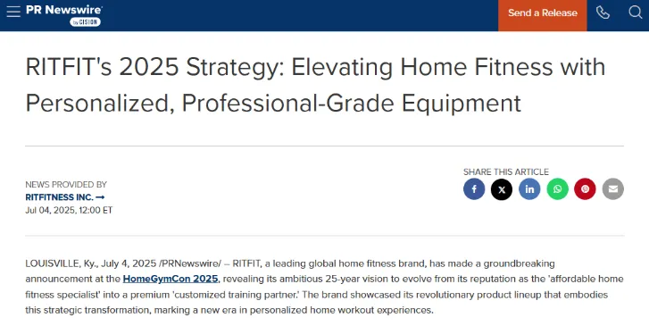 但到了 2025 年的 HomeGymCon 展会上,RitFit 通过官方新闻稿宣布了重大战略升级,致力于从 affordable home fitness specialist(实惠的家庭健身专家)全面转型为 customized training partner(定制化训练合作伙伴)。这种升维,让 RitFit 在高端太贵、低端无信任的市场缝隙中,稳稳扎下了根。