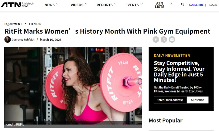 同时,Athletech News 也报道了其 Women’s Day 的粉色器材和女性主题动作 。直接为品牌赢得了公关上的先天优势。