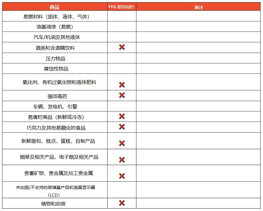 YTO 对以下类别的物品限制投递。请注意这些限制,以避免取件被拒。