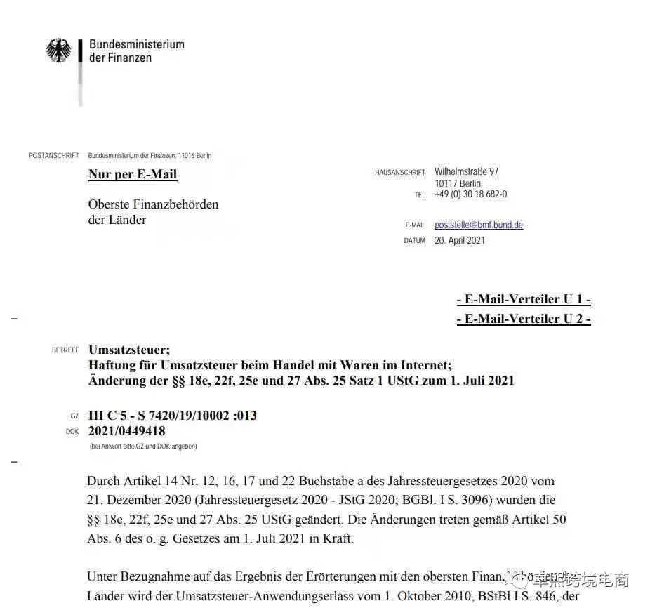 据德国增值税(VAT)最新政策通知:从2021年7月1日起,平台不再需要税务证书,只需要德国本地税号和VAT号码即可。