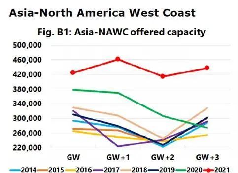 传统上,航运公司会在我国十一黄金周后削减运力,以缓解冬季疲软期间运价的下降,通常市场运力会下降至少20%。今年的黄金周及后3周的运力投放与往年大不一样。总体的运力不减反增,达到历史新高,而且黄金周期间运力没有明显减少,这在过去7年里尚属首次。