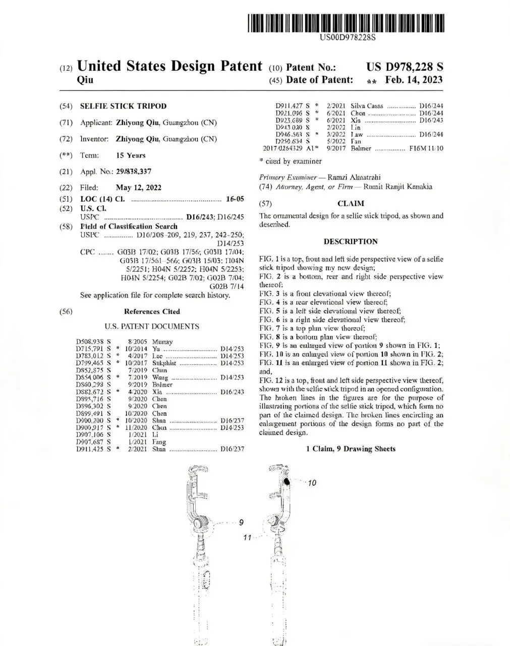 原告Qiaoxi Ma是我国卖家,名下有数条美国专利,大部分专利都是关于自拍三脚架