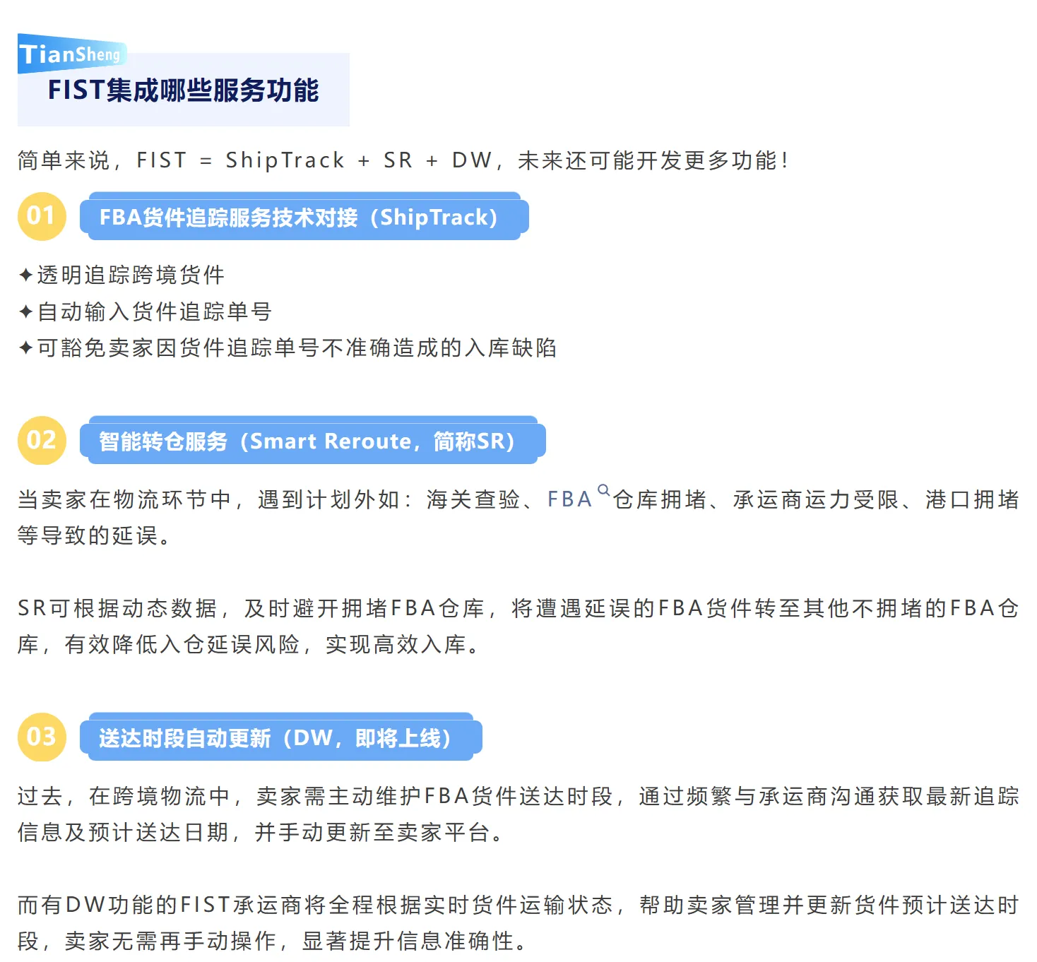 基于卖家的痛点,亚马逊ShipTrack升级为亚马逊FIST。(天盛跨境也同步升级为亚马逊FIST承运商!)