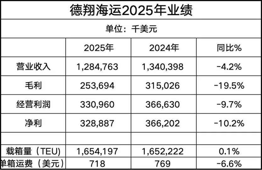 根据德翔海运同在3月20发布的业绩报告显示,公司在2025年全年: