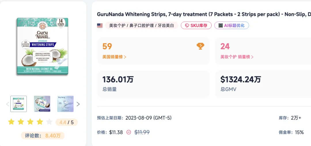 当DRDENT凭借达人矩阵一飞冲天时,另一位稳扎稳打的“老将”——GuruNanda值得关注。作为牙齿美白领域的成熟品牌,GuruNanda LLC的牙贴早已在TikTok上积累了可观的口碑。