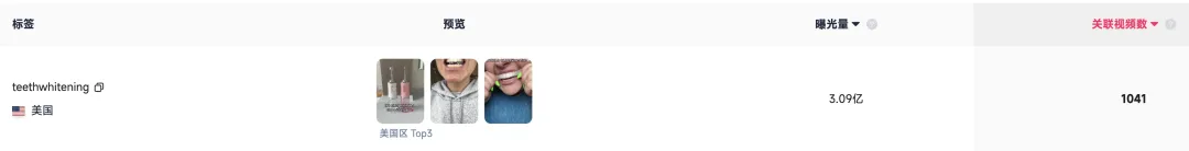 FastMoss的标签洞察中,搜索#teethwhitening,你会看到超过3亿的曝光量。近一个月,这个标签下的关联视频发布量突破1000+,美区播放量前三的视频里就有两则是GuruNanda的带货内容。这意味着,品牌GuruNanda并不依赖单条爆款,而是通过大量中腰部达人的日常测评,形成持续的品牌曝光和信任积累。这种“润物细无声”的打法,为品牌构建了更稳固的护城河。