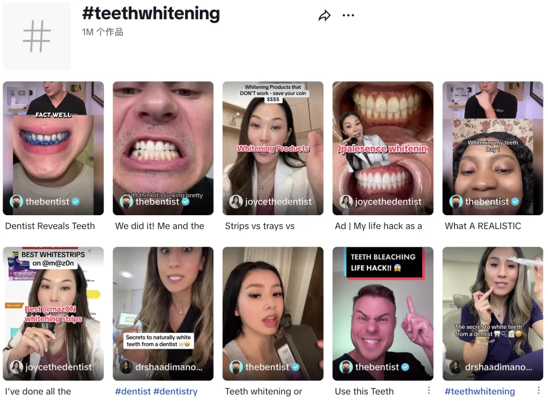 这还不是孤例。在DRDENT的达人矩阵中,类似的内容逻辑被反复复用:上牙vs下牙、使用前vs使用后、刷牙不掉色。每一个对比都在强化产品的核心卖点——“真实有效”和“安全无刺激”。