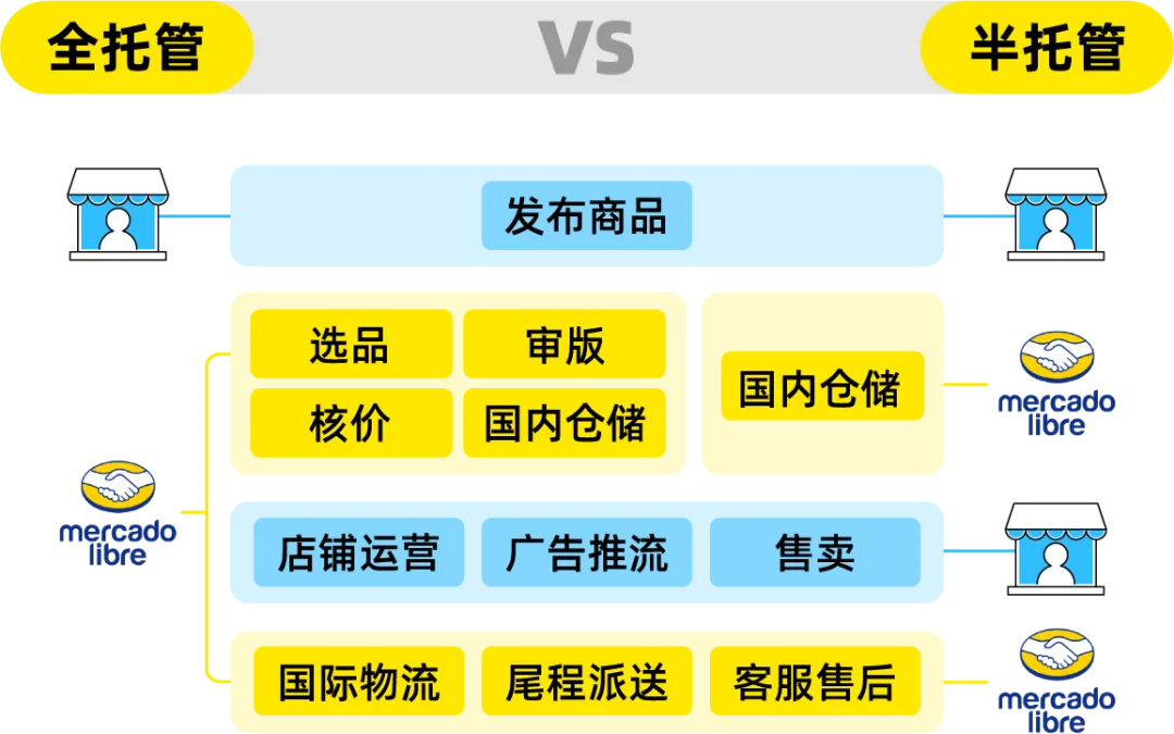 这里有个细节值得注意。Temu、Shein等平台的半托管通常要求卖家有海外本土的履约能力,也就是你得自己在海外有仓库或者负责发货。而美客多的半托管,则是将货品备货至其中国官方仓,由平台完成从中国到拉美消费者手中的全流程。这对于众多尚未在海外建立本土履约能力的中国卖家而言,是一个低门槛、高效率的切入点。全托管在这个基础上更进一步,连前端运营都不用管了。