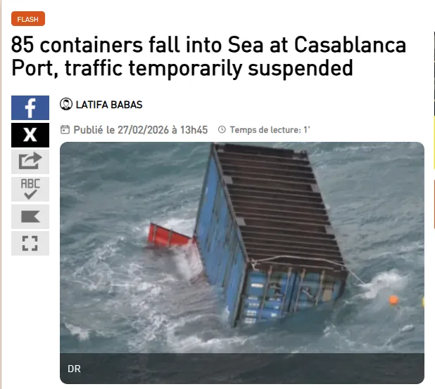 突发!约85个箱子落水!赫伯罗特运营集装箱船出事故,涉事港口暂停运营