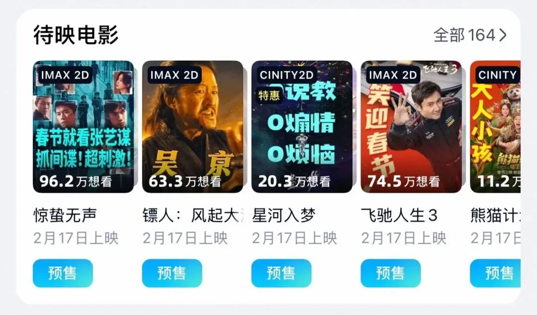 2026春节档新片预售票房破1000万