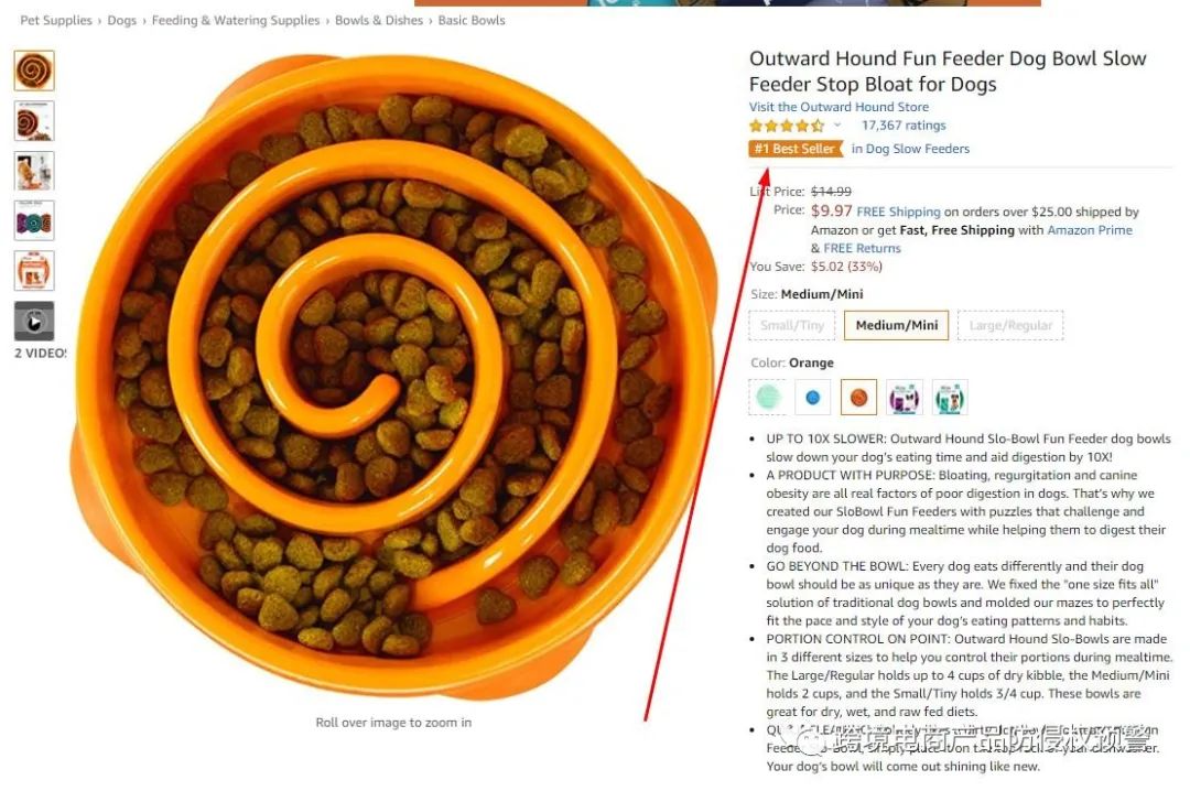 这样的设计理念太赞了!下面分享一款在Best Sellers排名第一的宠物慢食碗的销售情况,目前有17367个留评,