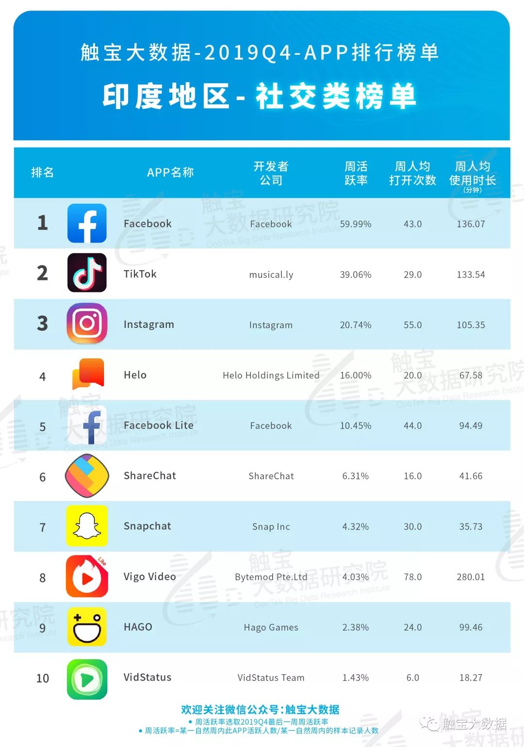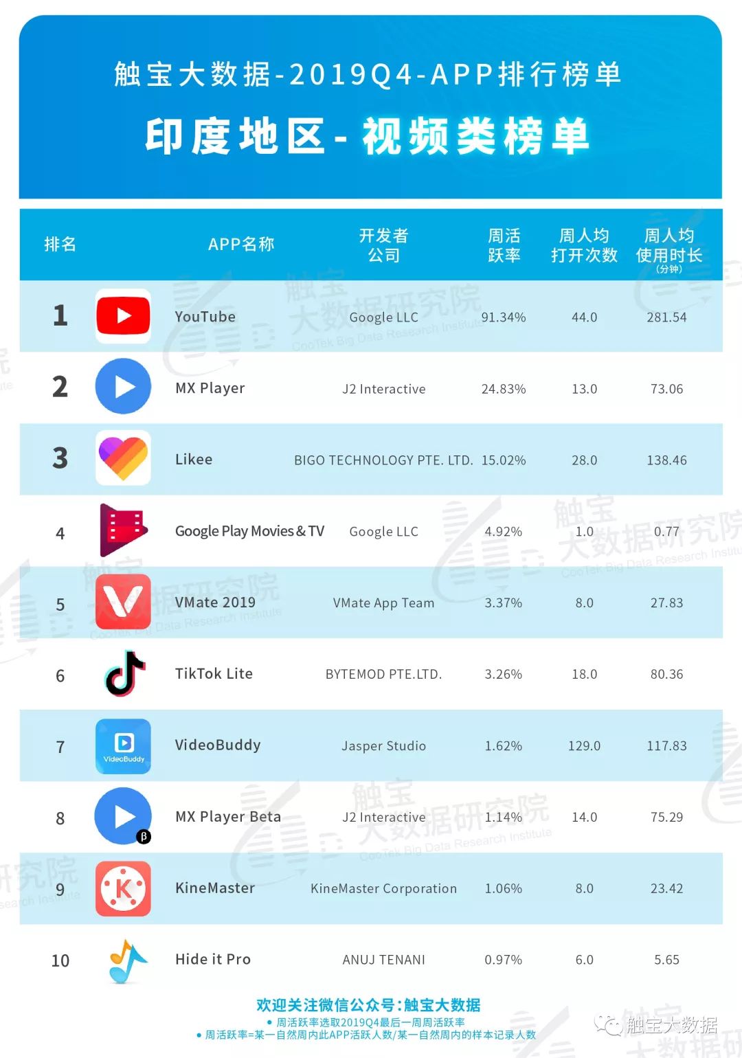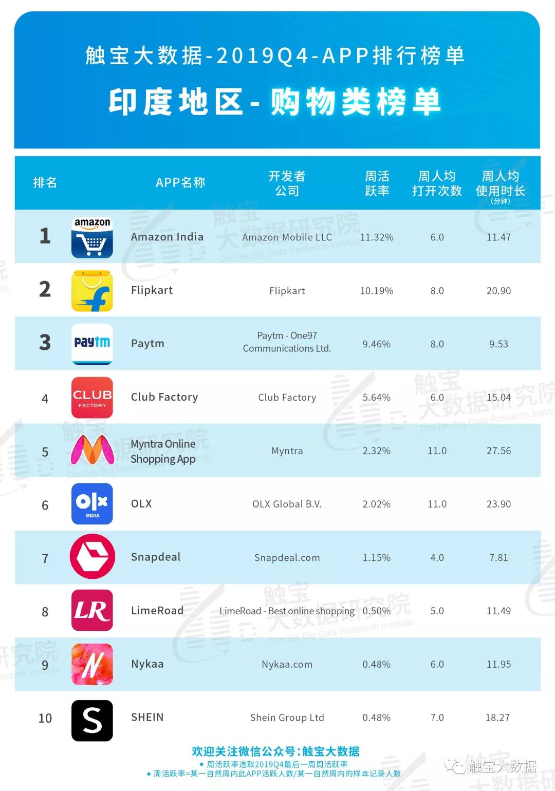 2019Q4印度市场APP排行榜:泛娱乐应用市场仍有潜力,出海电商瞄准中产时尚市场