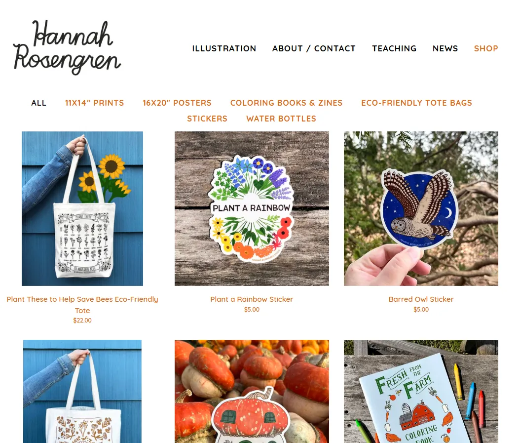 Hannah Mae Rosengren 是美国资深插画师,拥有美术学士学位和综合学习教育硕士学位,目前还担任社区大学的插画教师。她的客户资源十分优质,包括 Greenpeace(绿色和平组织)、ELLE Decoration Sweden(瑞典版 ELLE 装饰杂志)等知名机构,2023 年还出版了首部儿童绘本,在插画领域拥有较高的知名度和商业价值。