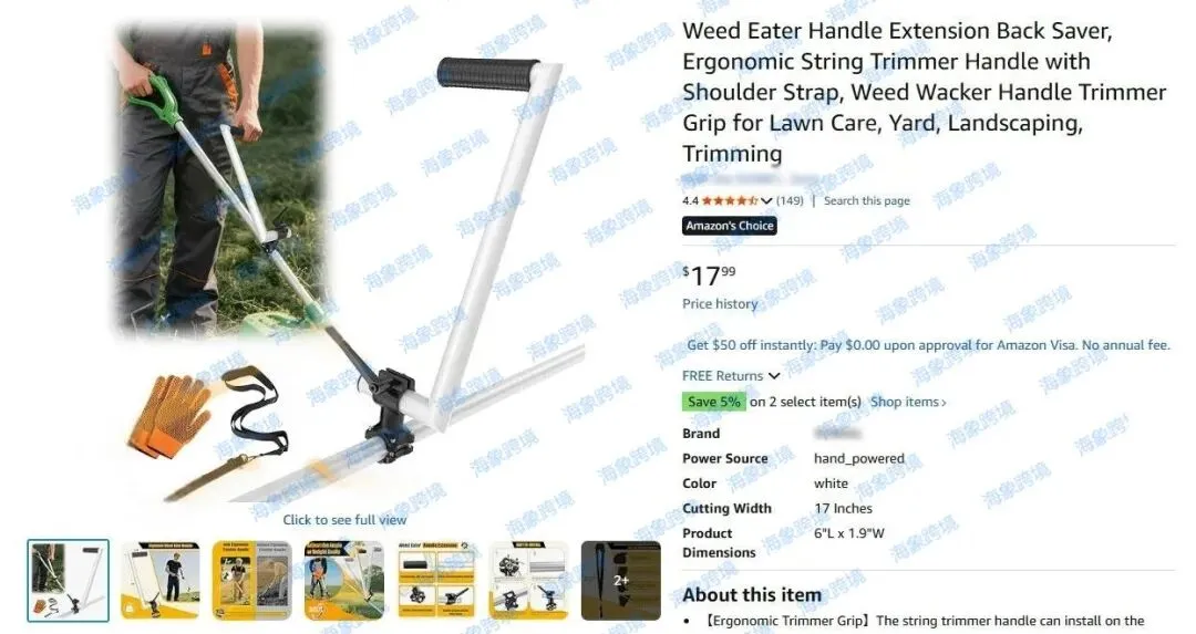 本案为国人原告,案件涉及专利产品是一款割草机手柄延长器,可安装在割草机轴上,帮助操作者在修剪时保持直立姿势,减轻背部压力。请相关卖家注意排查避雷!