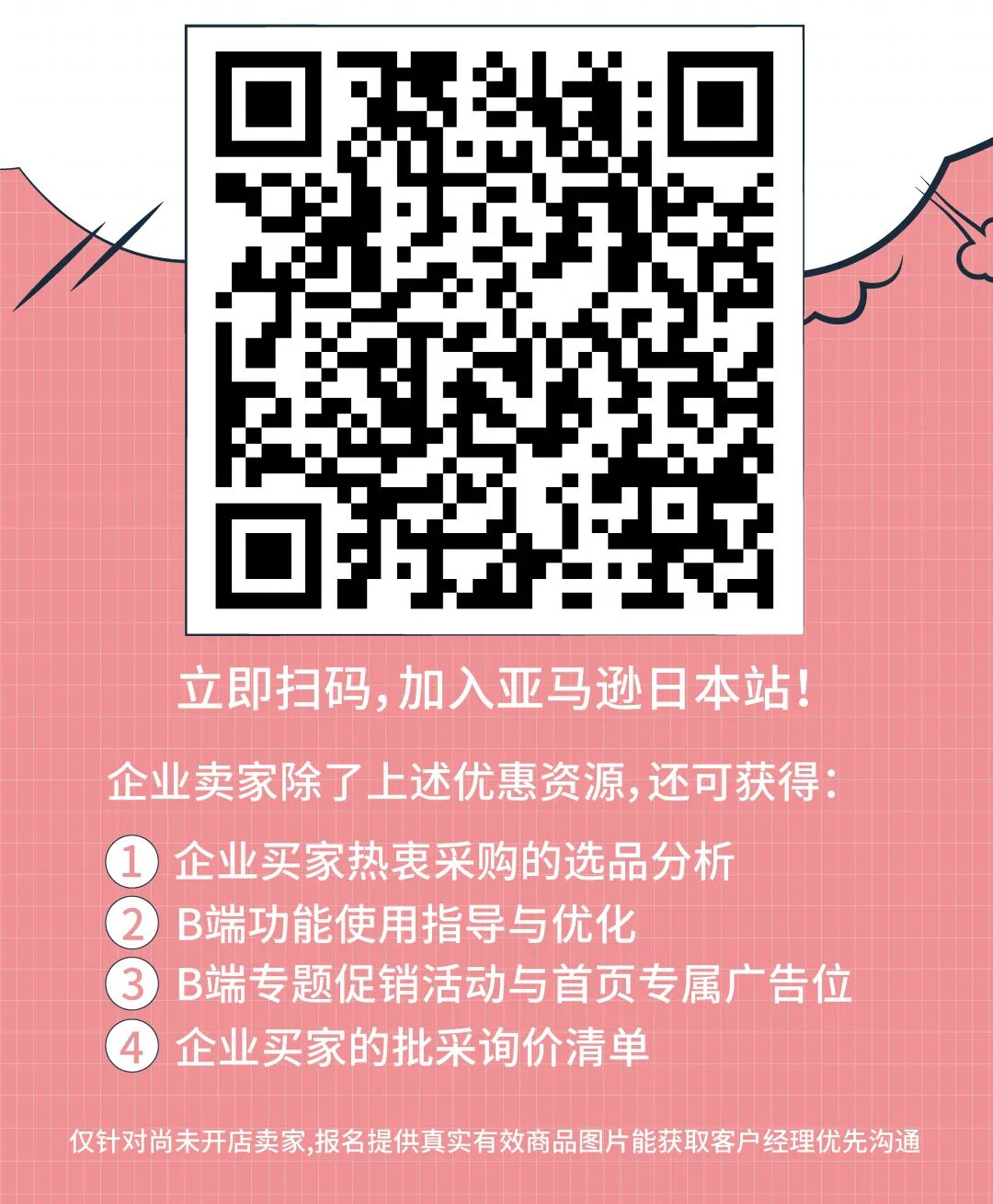 全文2203字,阅读需约 7分钟 疫情未褪,中日之间在战“疫”期间守望互助再次为双方关系注入暖流。为了助力卖家掘金日本,现在加入亚马逊日本站的卖家,即可享受囊括6大福利的开店大礼包一次性大放送! 福利一: 拓展跨境电商的优质之选 享多站点月租费超值优惠 中日两国长期互为重要经贸合作伙伴,双方贸易往来稳定繁荣,算得上是当今贸易形势下的一股清流。中国是日本第一大贸易伙伴和消费来源国1,如今的日本人也越来越离不开中国产品。 日前有一档日本综艺节目,测试“一个日本家庭离开中国制造会怎样”,经过4个多小时的整理,几乎把家里搬空了,有619件家庭用品都是中国生产!包括做工精良的西装、皮鞋、床垫……通过亚马逊日本站,坐拥生产链优势的中国卖家尽可大展拳脚。 日本站现已加入亚马逊连接账户计划,如果你已经在亚马逊其他站点开店,只需在卖家平台将日本账户绑定现有账户,无需支付单站月租费,次月即可享受多站点月租费总额39.99美元福利,每月可省4900日元! 福利二: 多个品类佣金费率直降 让你的利润空间节节高 日本是世界第三大经济体,预计到2022年,日本的电商零售额将达到近1600亿美元2。在这片网购渗透率高达70%3的“剁手党聚集地”里,购买力强、退货率低、复购率高是日本消费者的三大特征。数据显示,早在2017年日本人均网购年消费就达到了1164美元4(约合8,168人民币),估计每到年底看网购账单时,隔壁的十一区人民也会和我们一样,发出“我的手不听使唤”的感叹吧。 时尚品类在2020/3/1~2021/2/28期间超过一定售价的商品,品类佣金将从15%降至5%-8%不等,详情请戳👉🏻时尚品类佣金优惠政策 消费品品类在2019/9/1~2021/2/2期间同样有促销,宠物和母婴类产品可享受5.3折的销售佣金优惠!详请请戳👉🏻消费品品类佣金优惠 福利三: 地缘优势头程快又省 FBA物流服务全面升级 日本与中国相邻,这也是中国卖家开展跨境电商业务的主要优势之一。两国距离到底有多近?上海与日本长崎的直线距离不过690多公里,这距离比上海到北京还要近差不多一半! “近在咫尺”的距离给物流成本和运营方面带来得天独厚的便利——头程运输时效短、成本低,让中国卖家也可以体验一把类似“江浙沪包邮的快感”;距离近也能让库存管理更精确,周转快且灵活度大,随时补货入仓,老板再也不用担心爆款卖断货补不上啦。而且,亚马逊物流FBA可实现全境48小时配送,当日/次日即可送达,购物体验也是一大优势。毕竟,还有什么比当天/隔天就拆快递更能让消费者兴奋的呢?! 福利四: 广告优惠+站内外流量加持 轻轻松松助你打造爆款 亚马逊日本站内有丰富的引流工具,8小时秒杀、七天促销、镇店之宝、优惠券、积分以及独有的月促活动等,分分钟让消费者为你的产品“剁手”。日本社交媒体(SNS)的分享文化盛行,这使中国卖家在日本做站外营销更如鱼得水,亚马逊还能帮助您对接站外营销渠道进行产品推广,让你如虎添翼。 此外,亚马逊日本站除了每年的年中大促(Prime Day)和年底网购狂欢(黑五/网一),还有诸如樱花季、梅雨季、花火大会等特有销售高峰期。 好消息!对于在日本站新开通广告功能的卖家,即可获得5000日元广告免费使用额度,领取90天内有效! 福利五: 入驻即享销售转化神器 迅速出单说有就有 地理位置有天然优势、物流成本低时效快、站内外引流也有保障,真正要开店运营亚马逊日本站,却担心“一顿操作猛如虎,到头出单一片糊”?不用担心!提升销售转化率的“神器”——A+页面(图文版商品描述),无需品牌注册,入驻日本站即可享受!相较于冷冰冰的纯文字商品描述,图文并茂尽情展示产品功能和优势的A+页面,助你的产品稳稳“走”进消费者购物车,爆单指日可待。 福利六: 翻译/优化/客服三大服务 帮你把日语障碍一扫而光 明明很心动,却因为只会说“卡哇伊、桥豆麻袋和干巴爹”,对日语一窍不通只能和商机满满的亚马逊日本站生意说拜拜?不存在的!在亚马逊日本站开店,三大服务助你消除语言障碍,实现真正的躺赢! 亚马逊日本站的6大福利大家都了解了吗?亚马逊全球开店日本站业务总监和账户运营经理为你进一步解读日本站机遇,点击下方视频了解更多! 新卖家学习提示 前往卖家大学:登录卖家平台->卖家大学 观看直播:微信菜单栏->重要资讯->官方直播 报名线下小班课:微信菜单栏->经营有道->官方培训 看到这里,你是否已经蠢蠢欲动?现在扫描填写申请表即可享受2020日本站开店6大福利喔! * 数据来源: [1]http://finance.chinanews.com/cj/2019/04-18/8813299.shtml [2]『亚太地区的电子商务趋势和展望』白皮书 https://www.forrester.com/report/eCommerce+Trends+And+Outlook+For+Asia+Pacific+Excluding+China/-/E-RES142191# [3]www.internetworldstats.com [4]https://www.sinointeractive.com/marketing_institute/216.html [5]https://consult.nikkeibp.co.jp/branding/brand-japan [6]同上