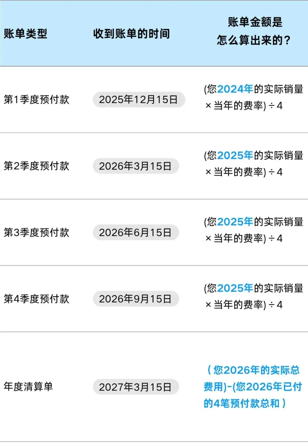 ◆账单内容:2026年第二、三、四季度的预付款。