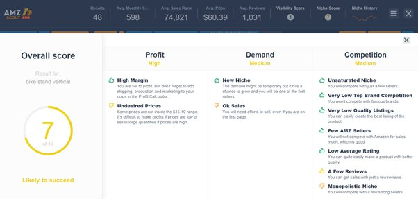 立式自行车架是一种在不使用时存放自行车的安全便捷方式,亚马逊上的每月平均销售额为1194美元。这个利基市场的需求很高,竞争对新卖家来说也是比较低的,并且尚未出现较强的品牌和卖家。