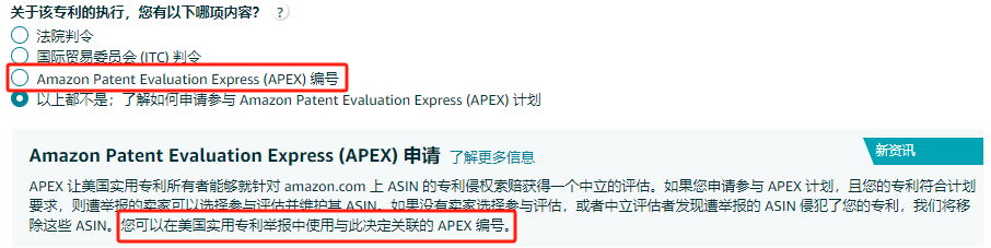 ▼卖家在投诉专利侵权时可直接勾选APEX编号进行维权