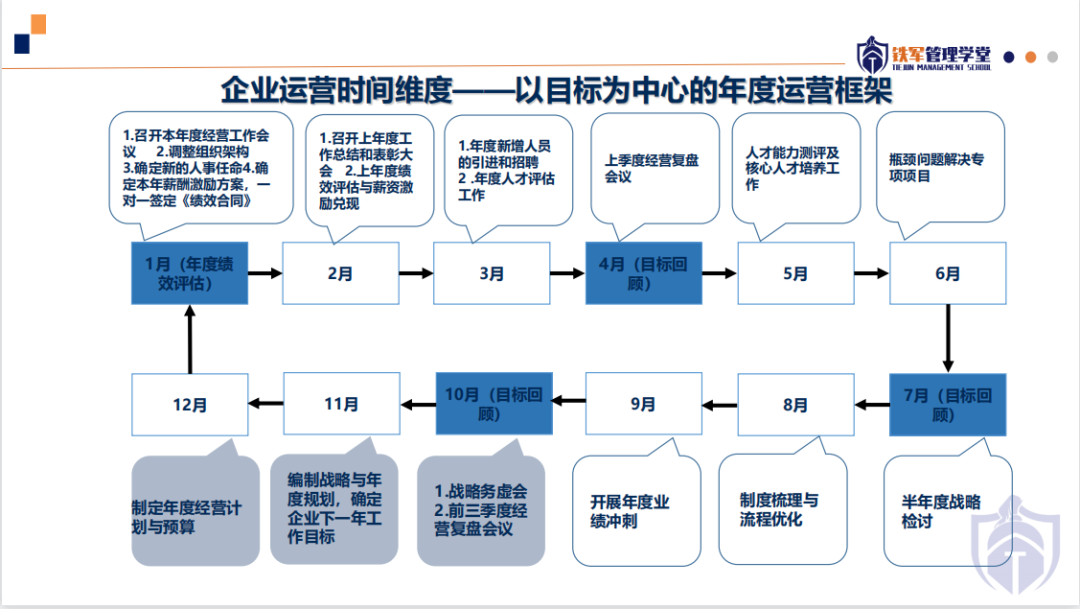 这里分享一张企业运营时间维度-以目标为中心的年度运营框架。