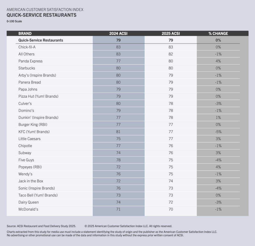 图源:ACSI Restaurant and Food Delivery Study 2025
