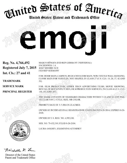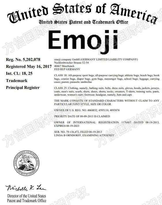 本案涉及多项emoji商标维权,涵盖了日化用品、电子设备、珠宝钟表、文具纸张、皮包、厨房用具、服饰鞋帽、地毯、玩具及体育用品、食品、饮料、商业服务、娱乐教育等,未经授权,切勿使用!