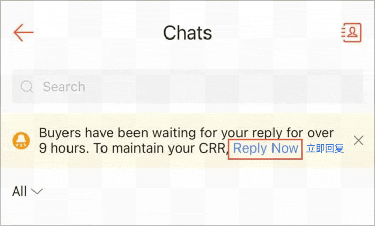 您有 12 小时的时间回复“未回复”筛选器下的消息,否则这些未回复的聊天记录会降低您的转化率 (CRR)。转化率过低可能会影响顾客的购买意愿,从而影响您的销售额。