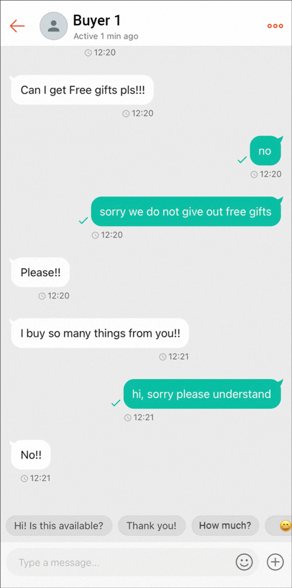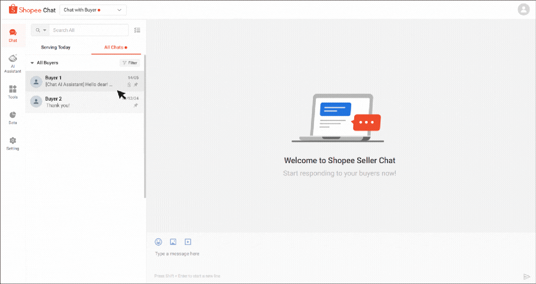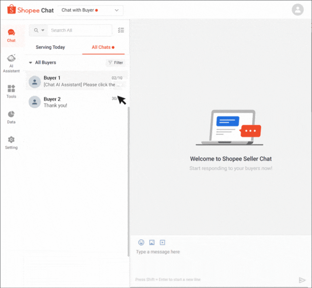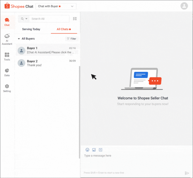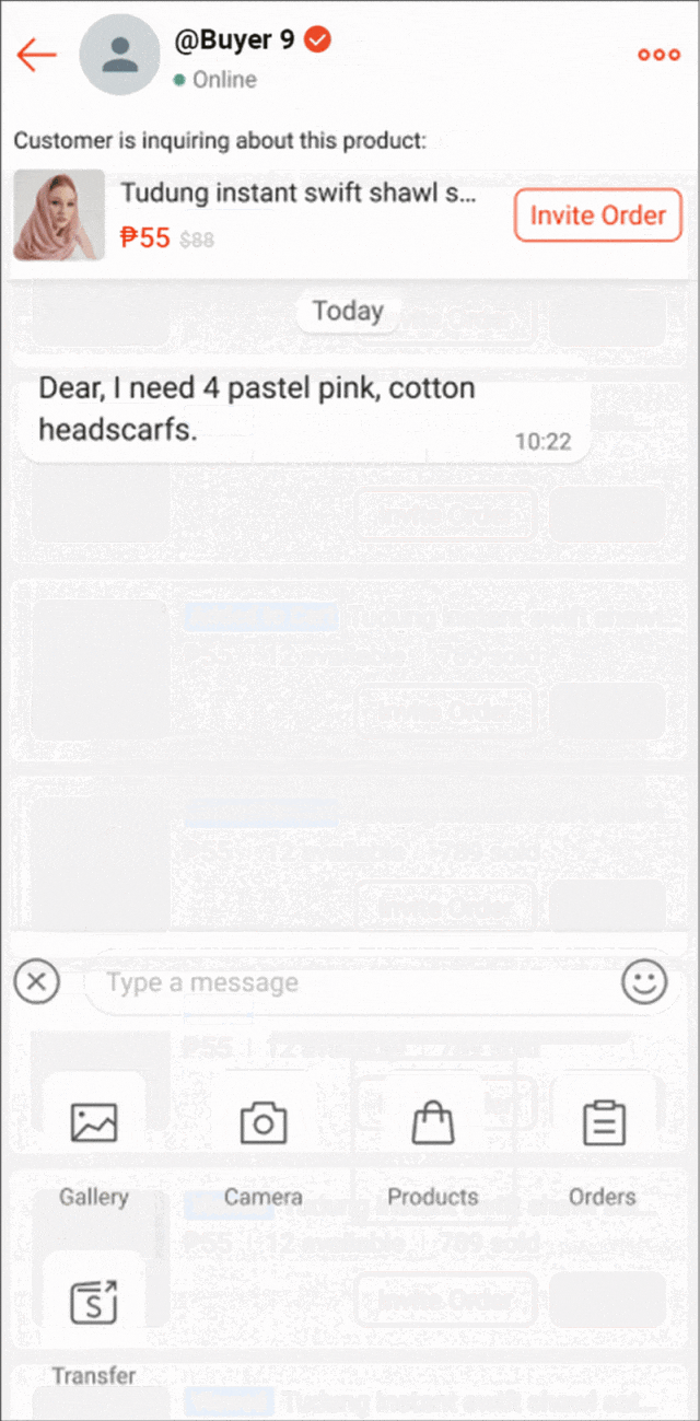 您可以通过 Shopee 卖家聊天邀请买家购买您的产品;这可以简化购买流程,从而改善买家的体验,并提高订单转化率。