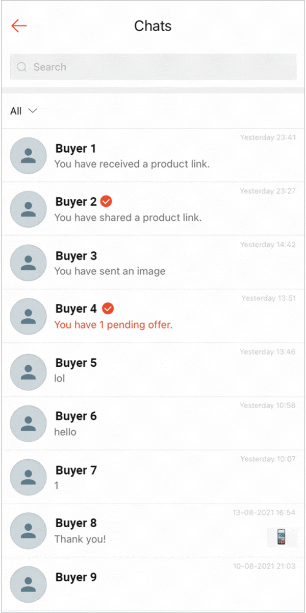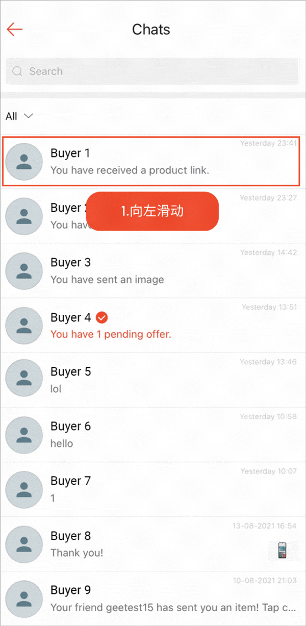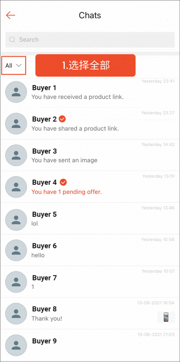 选择店铺消息后,只会显示与买家的聊天记录。这有助于您管理卖家和买家之间的对话。