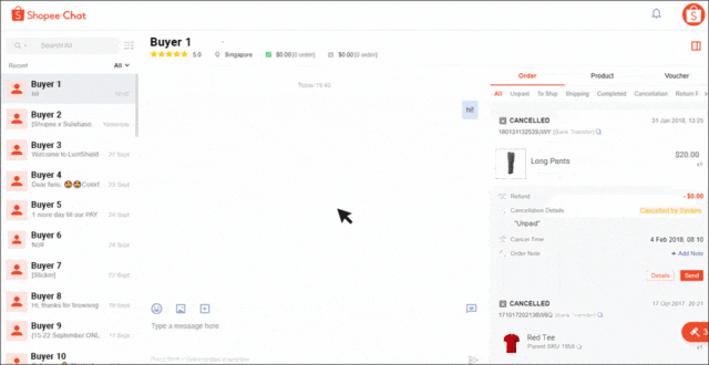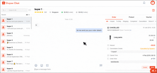 在与单个客户沟通时,您可以通过 Shopee 卖家聊天轻松查看订单详情。