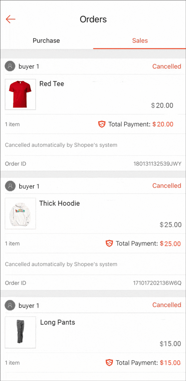 前往订单选项卡查看您已售出给客户的商品列表。然后,查看详细信息。