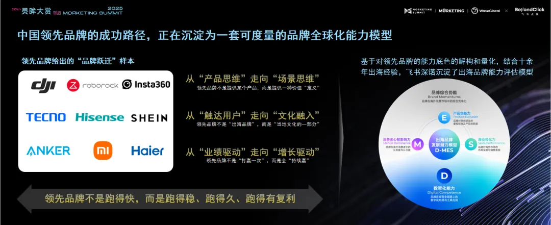 关于这些问题的答案,飞书点跃BeyondClick给出了范式,基于对领先品牌的能力解构和量化,并结合10余年的出海经验,他们总结出了三条升级路径和一个潜力模型: