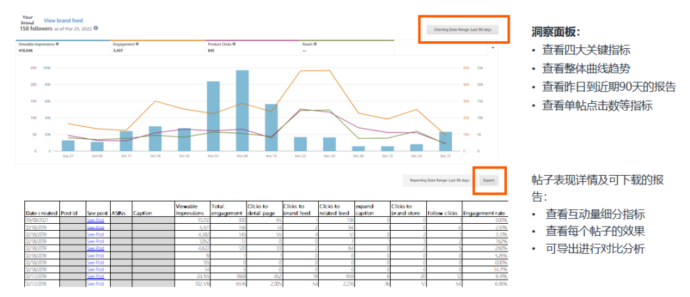 在亚马逊平台上,洞察面板(Insights Dashboard)是一个非常重要的工具,可以帮助卖家全面衡量和优化其帖子(Post)的表现。