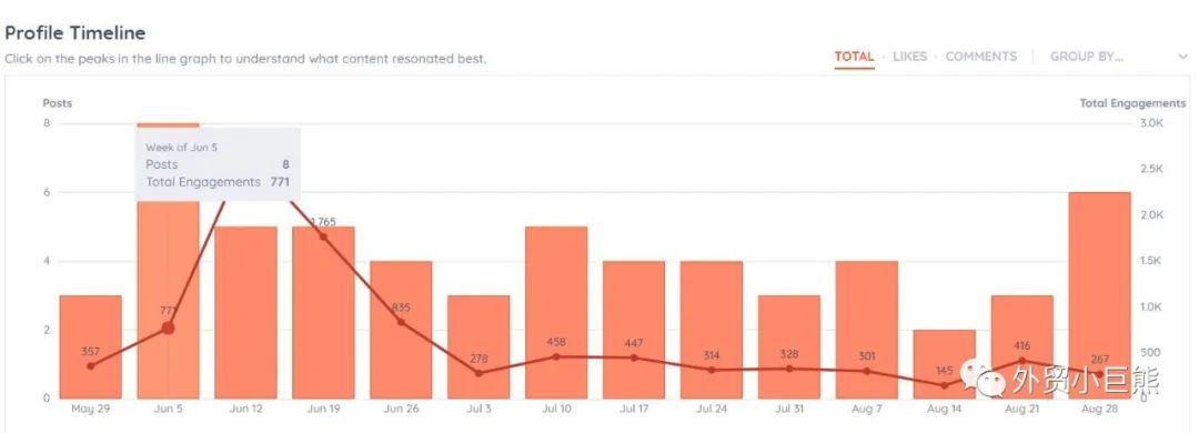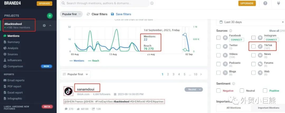 我们也能查看#backtoshool该关键词总帖子数,还能看到每天的发帖数量。