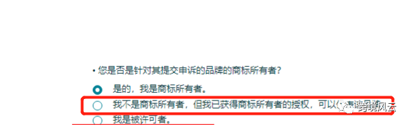 1 直接选我不是商标所有者这项,然后提供授权书,文章后面提供“授权书模板”