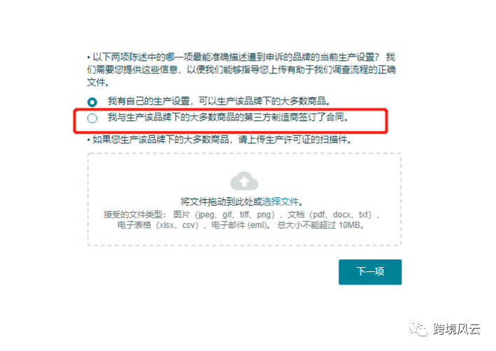 2 选红框项,我与生产该品牌下的大多数商品的第三方制造上签订了合同