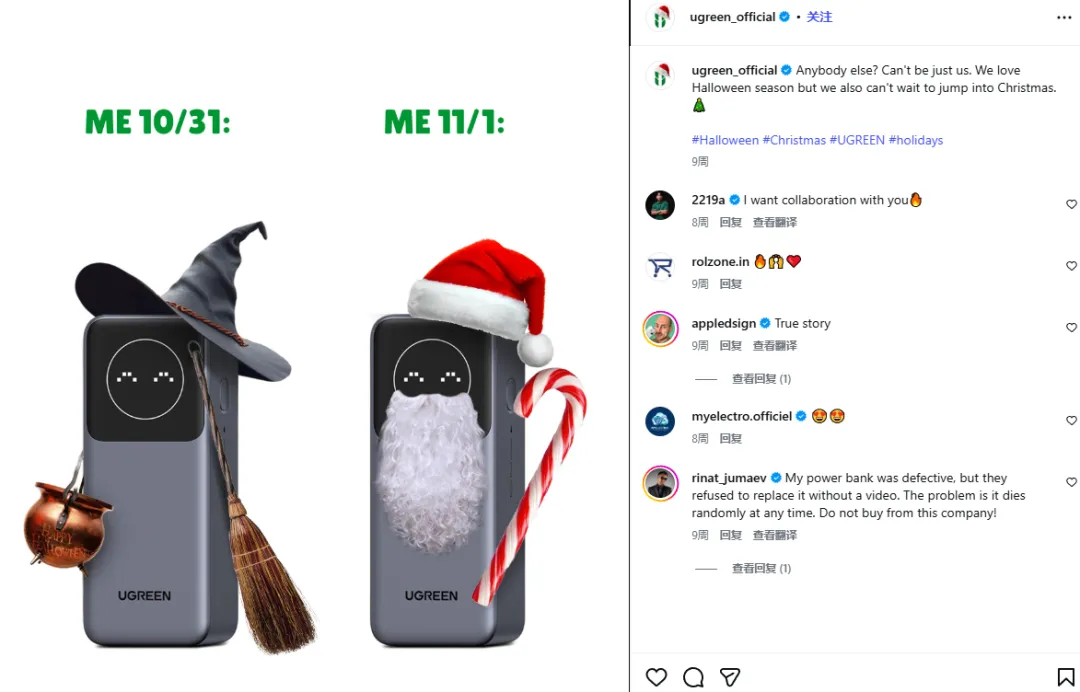 此外,绿联科技还注重在社交媒体上构建品牌与受众之间的情感联系,通过转载有趣的视频内容、策划互动活动以及制作与“充电”、“存储”等话题相关的Meme,成功将品牌融入到用户的日常生活中。