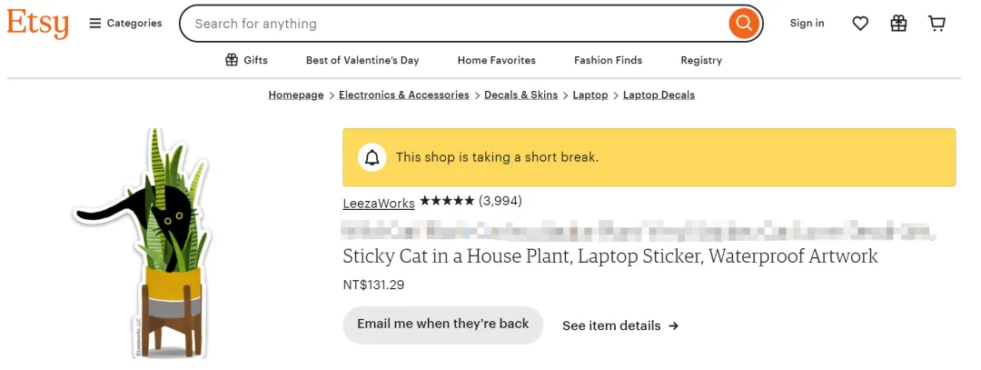 原告Leeza Hernandez是一位居住在美国的英国设计师、插画师和手工艺人,同时兼具作家身份,她的作品以黑猫插画和儿童读物插图而闻名。而这些画作也被制作成艺术版画或是家居礼品在海外电商平台上售卖。
