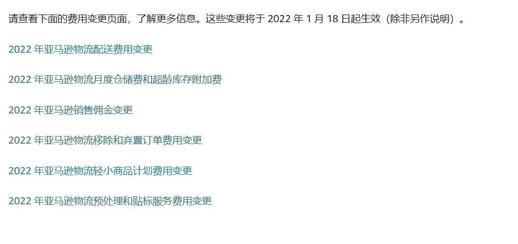 因为从2022年1月18日起,亚马逊将有六项费用上涨!其中“亚马逊物流移除和弃置订单费用变更”涨幅最大。