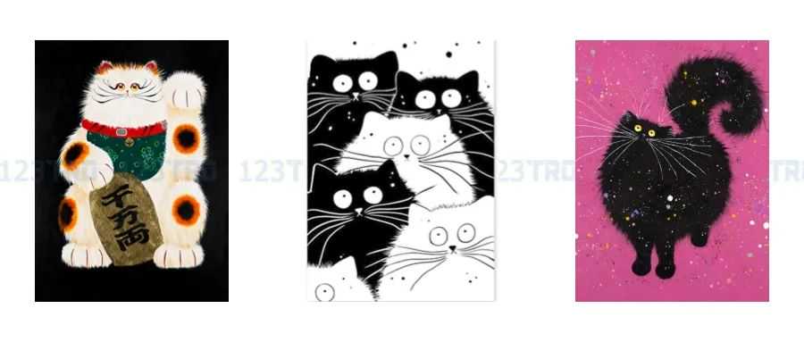 原告Kim Haskins以野生眼神的蓬松猫咪和色彩鲜艳的古怪鸟类为创作主题,自己也有独立站。