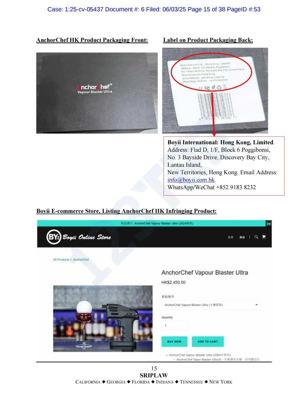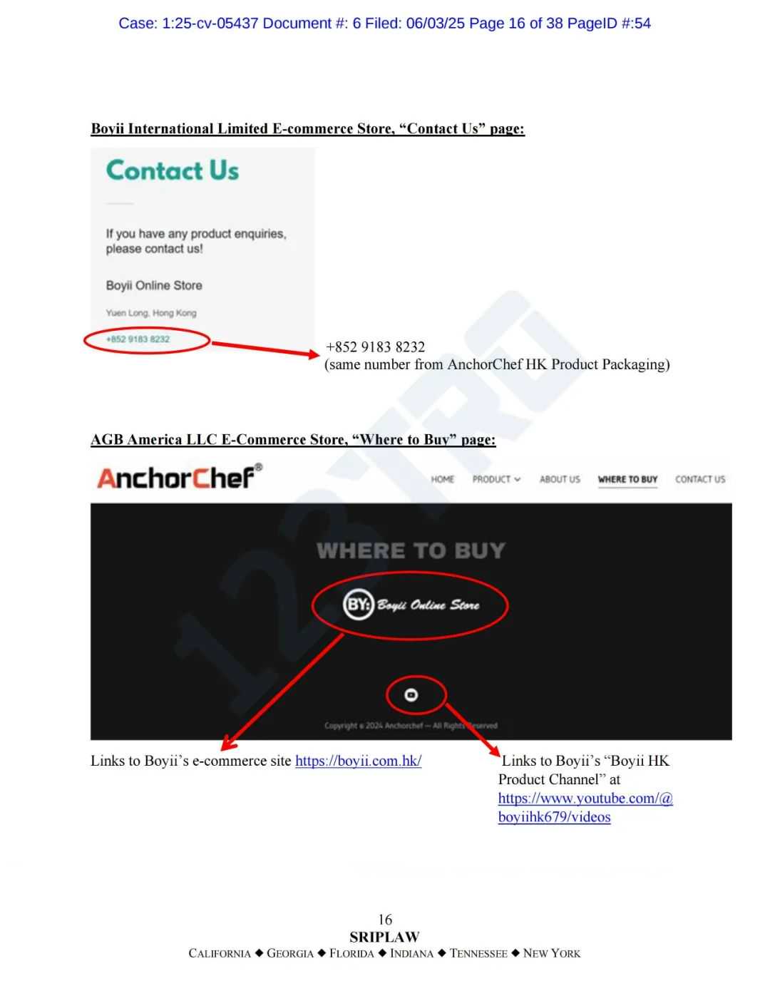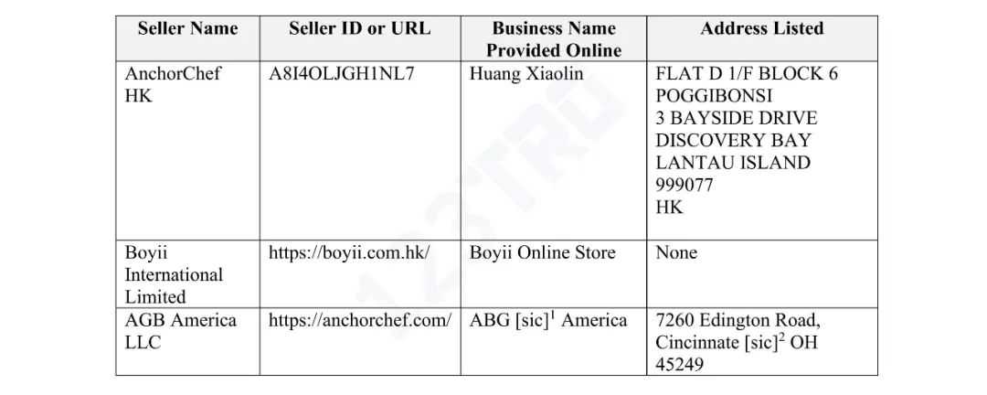 原告购买侵权品后发现,被告Boyii 是制造商,并引用AGB America 的网站进行销售,三位被告使用同样的联系方式和供应链,存在协同侵权。