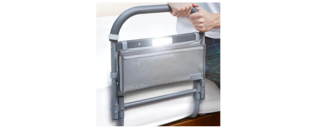 在权利要求1的基础上进一步保护了一种功能更多、结构层次更丰富的床栏形态。