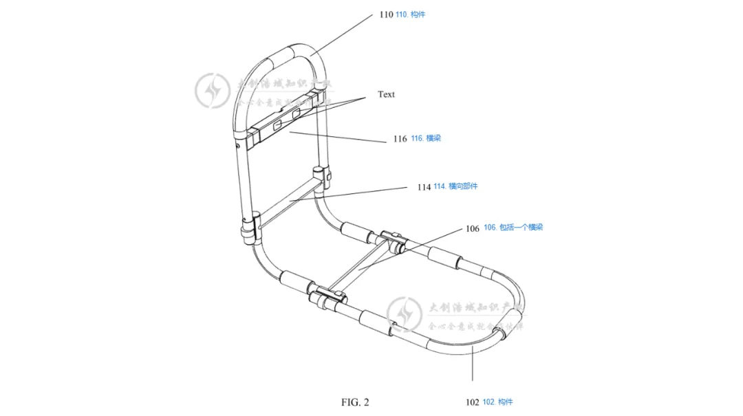 横杆具备 “四侧(第一至第四侧)+ 两端(第一至第二端)” 的结构。 横杆两端分别与两根管件直接相连。 横杆的第一侧有 “空心腔体”,第二侧有 “第一手指凹槽”,第三侧有 “第二手指凹槽”(三者缺一不可)。