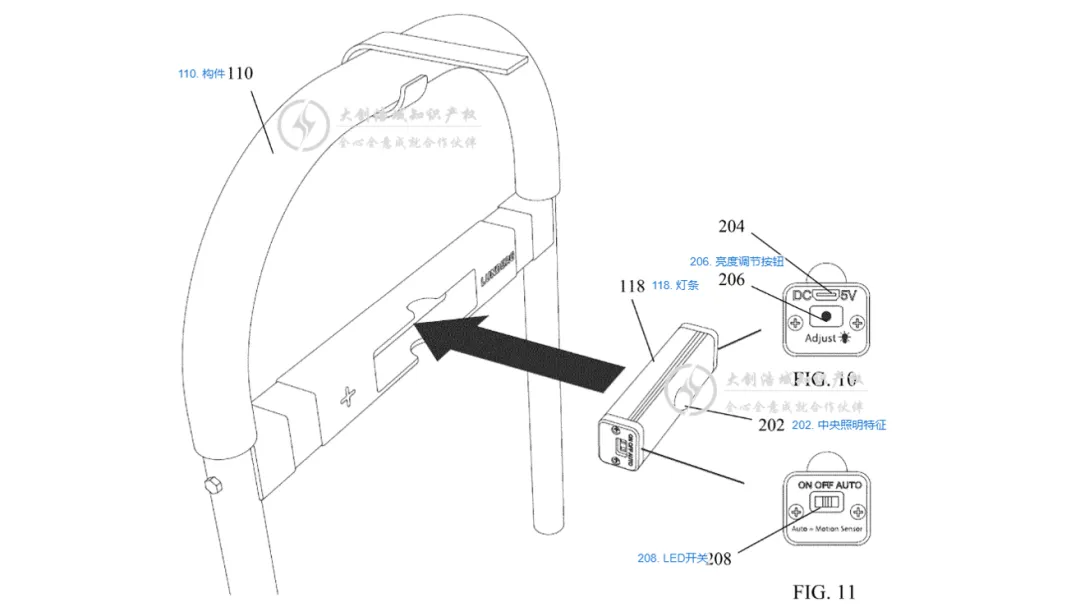 4. 照明方式:灯条可拆卸地安装在这根上层的横杆上。
