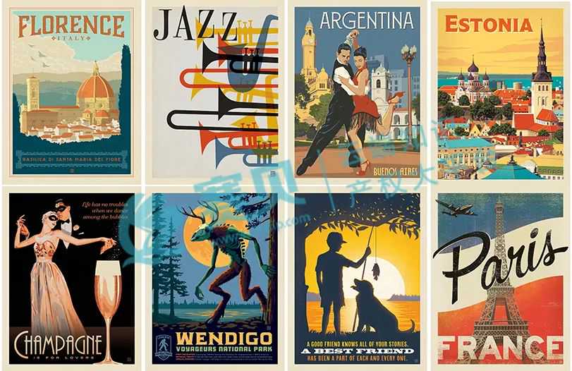 此案涉及8张版权作品,版权风格以复古旅行海报为底色,融入现代创意,借艺术化创作传递人文风情与独特创意。